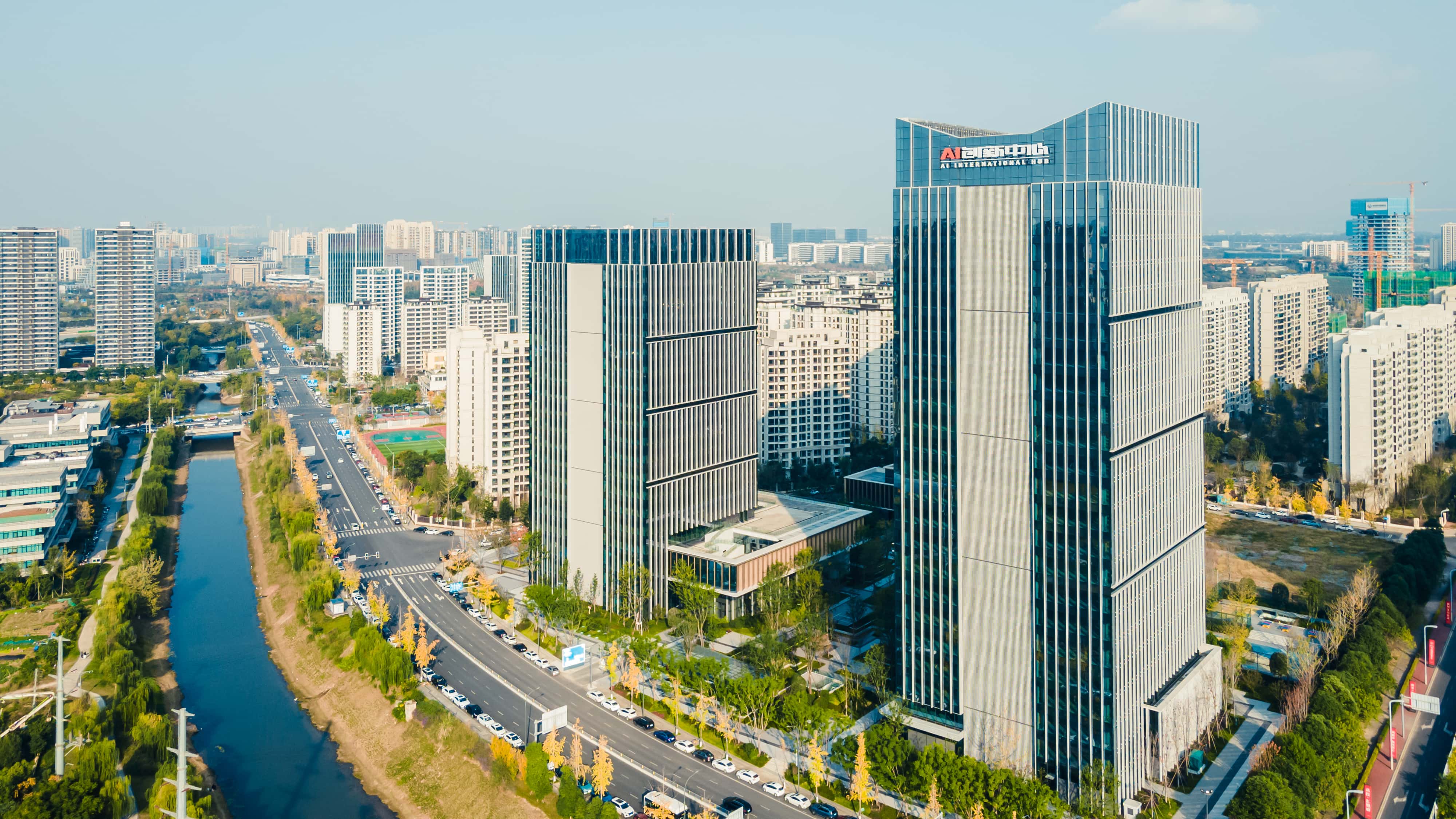 由成都高投产城集团下属软件园公司运营的AI创新中心便伫立在这片欣欣向荣的热土之上。其总建筑面积约100万平方米,与新川之心中央公园、四川省文化艺术中心毗邻而居。